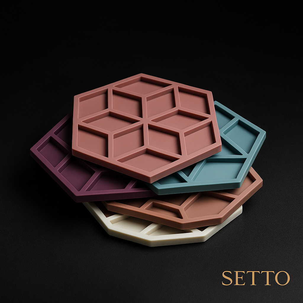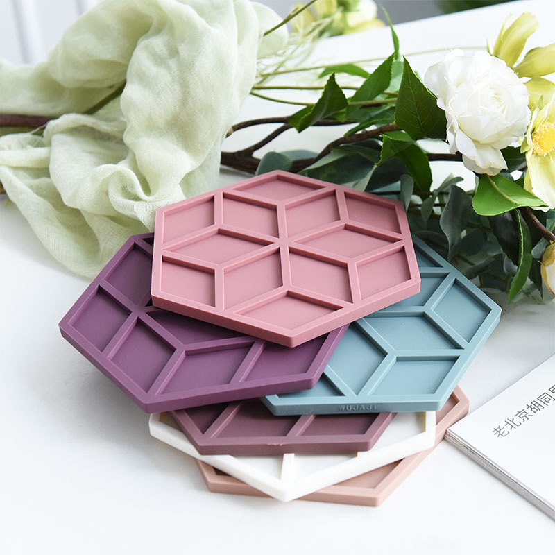 Modern hexagon silicone mat with a 3D geometric design. Heat-resistant, non-slip, and perfect for cups, dishes, or hot pots. A stylish touch of color and protection for every table.