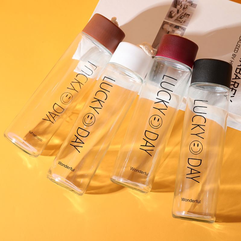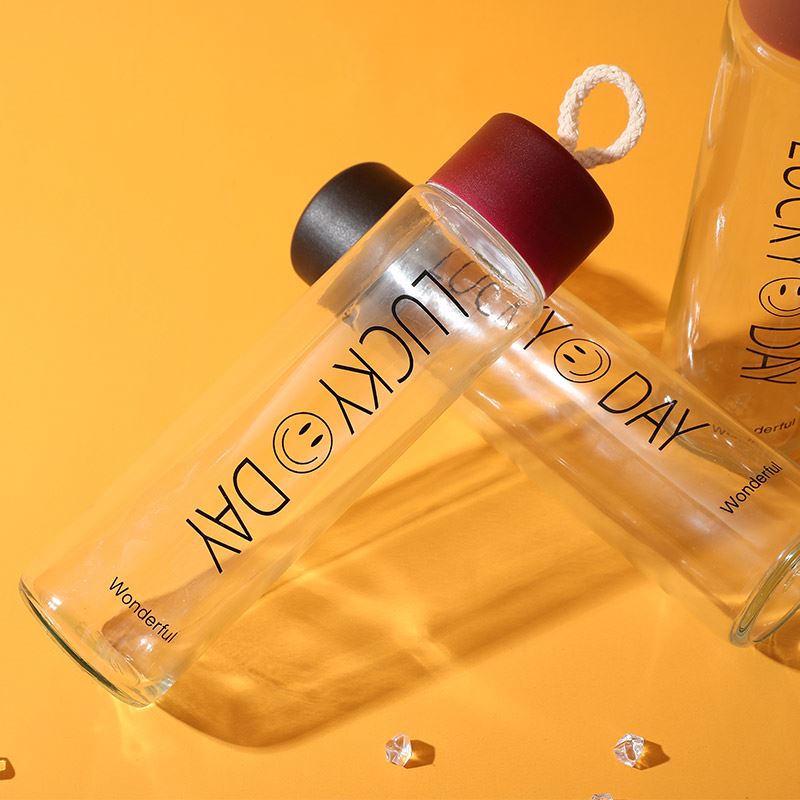 Stylish frosted glass bottle with a cheerful smile design. Lightweight, reusable, and perfect for everyday hydration. Easy to carry with a secure rope lid — drink happy, stay fresh! 💧