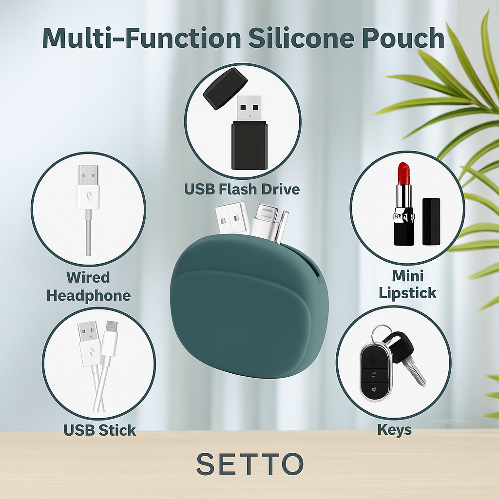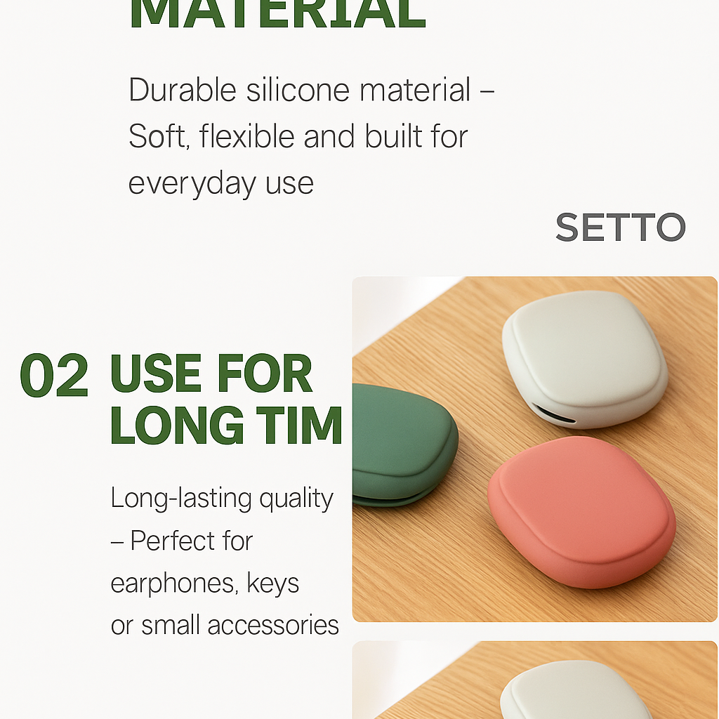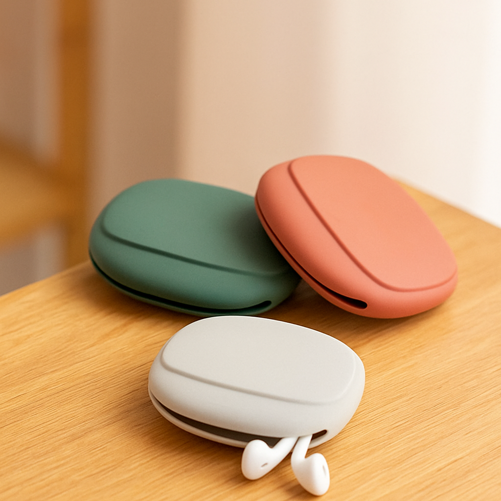 Made from soft, flexible silicone for maximum protection and durability. Perfect for storing earphones, USBs, keys, or small accessories. Compact, lightweight, and long-lasting — keeps your essentials neat and ready anywhere you go. Available in 3 modern colors: green, gray, and rose.
