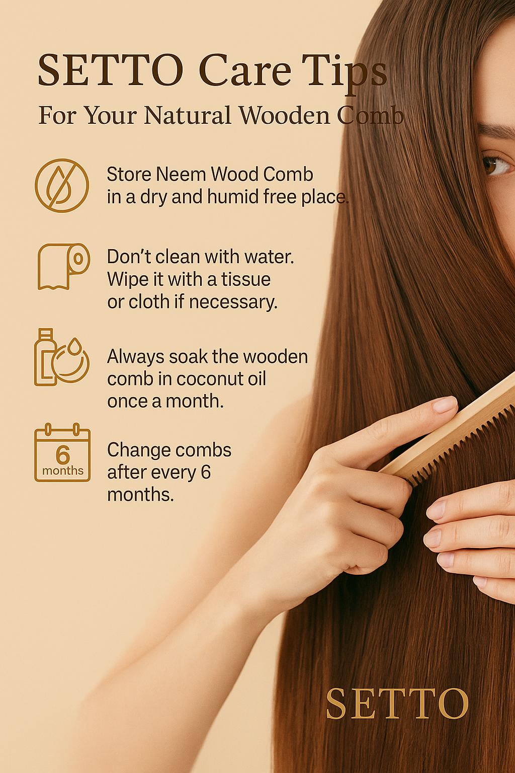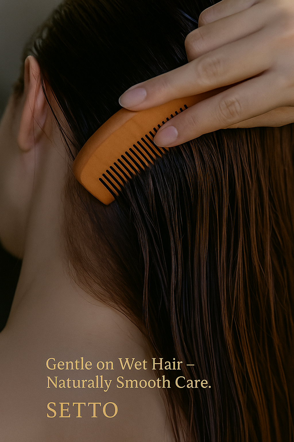 Crafted from 100% natural peach wood, this comb gently detangles without static or damage. Its smooth finish massages the scalp and enhances shine for healthier hair.