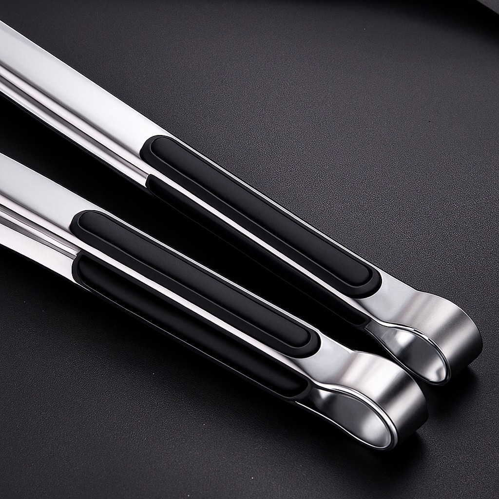 Each tong features a non-slip silicone handle for a comfortable hold and safe use, even with high heat. Perfect for BBQ, frying, salads, and baking.