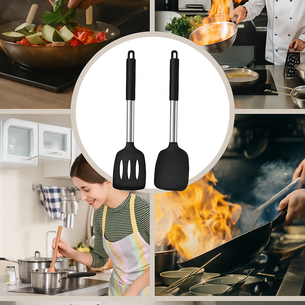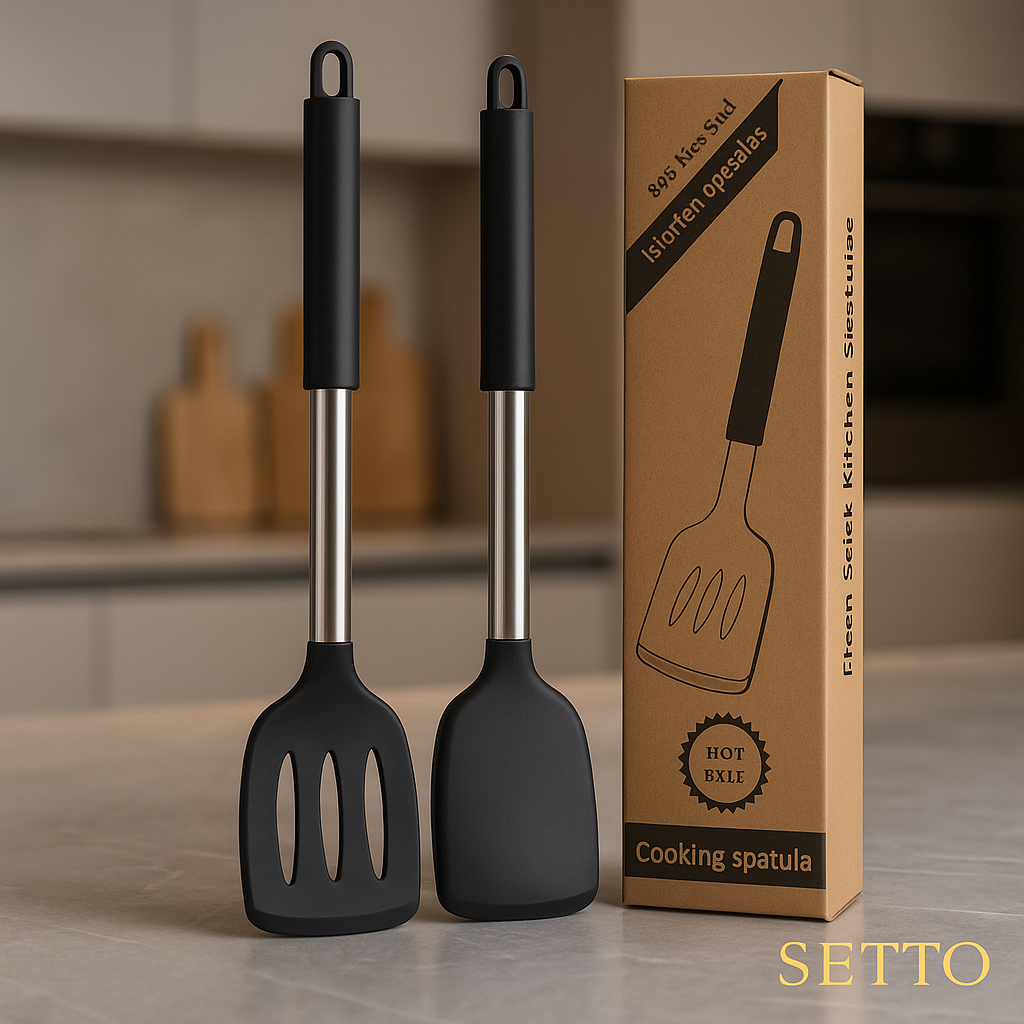 A perfect blend of strength and flexibility — this set includes two high-quality spatulas made with stainless steel handles and heat-resistant silicone heads. Designed for effortless flipping, stirring, and serving while protecting your non-stick cookware.
