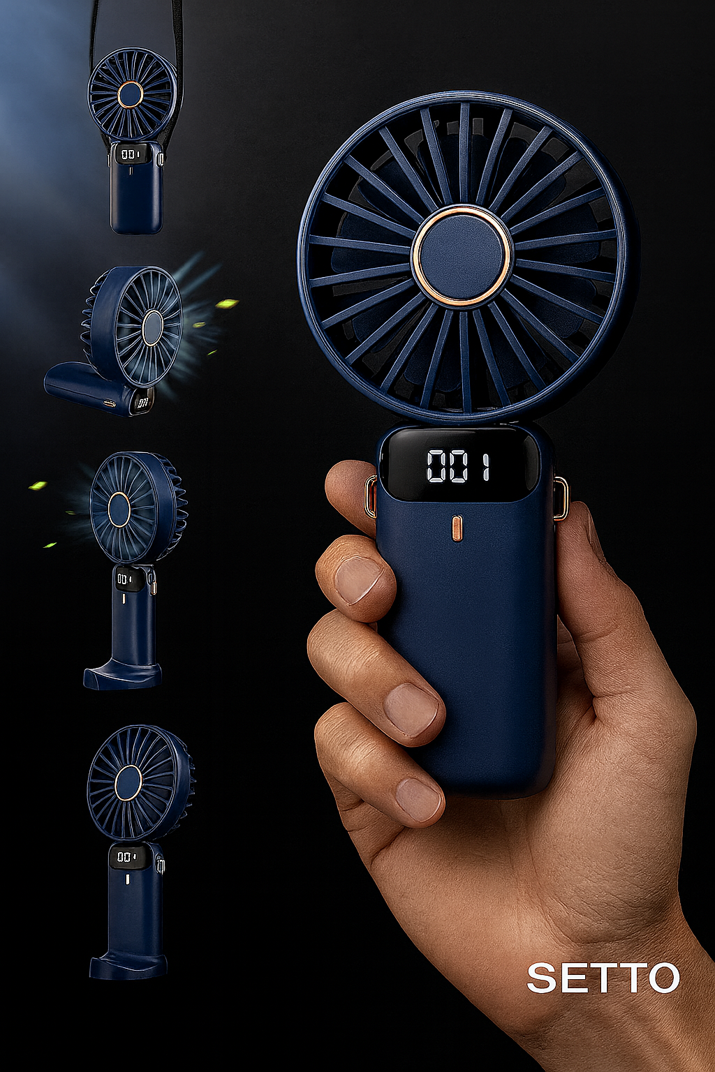 Equipped with a digital speed display, three adjustable wind levels, and a rechargeable USB battery, this fan combines smart technology with comfort. Its foldable base lets you use it as a desk fan or handheld device, while the quiet motor ensures cool air without noise.