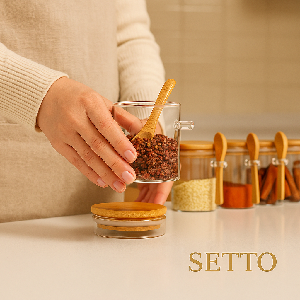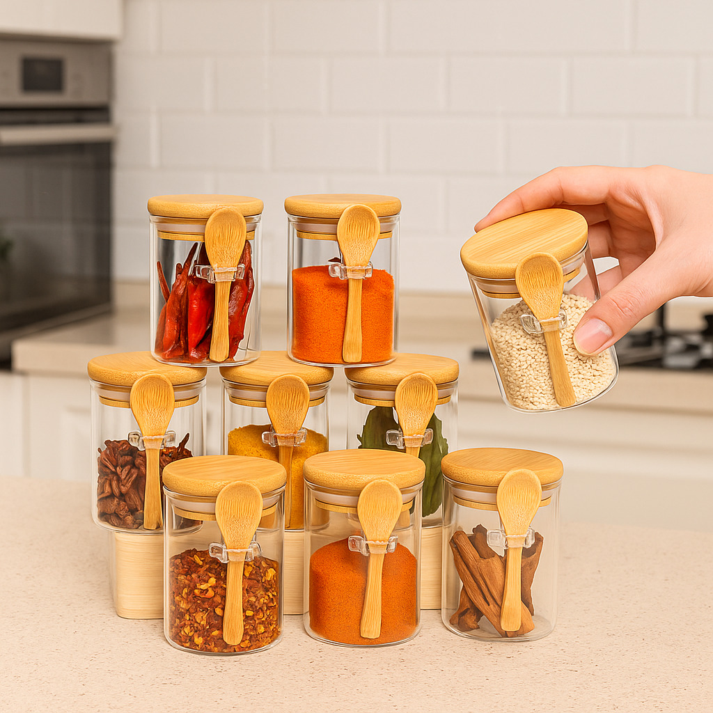 Made from premium clear glass with an airtight bamboo lid, it keeps your spices, coffee, and dry ingredients fresh and full of flavor.