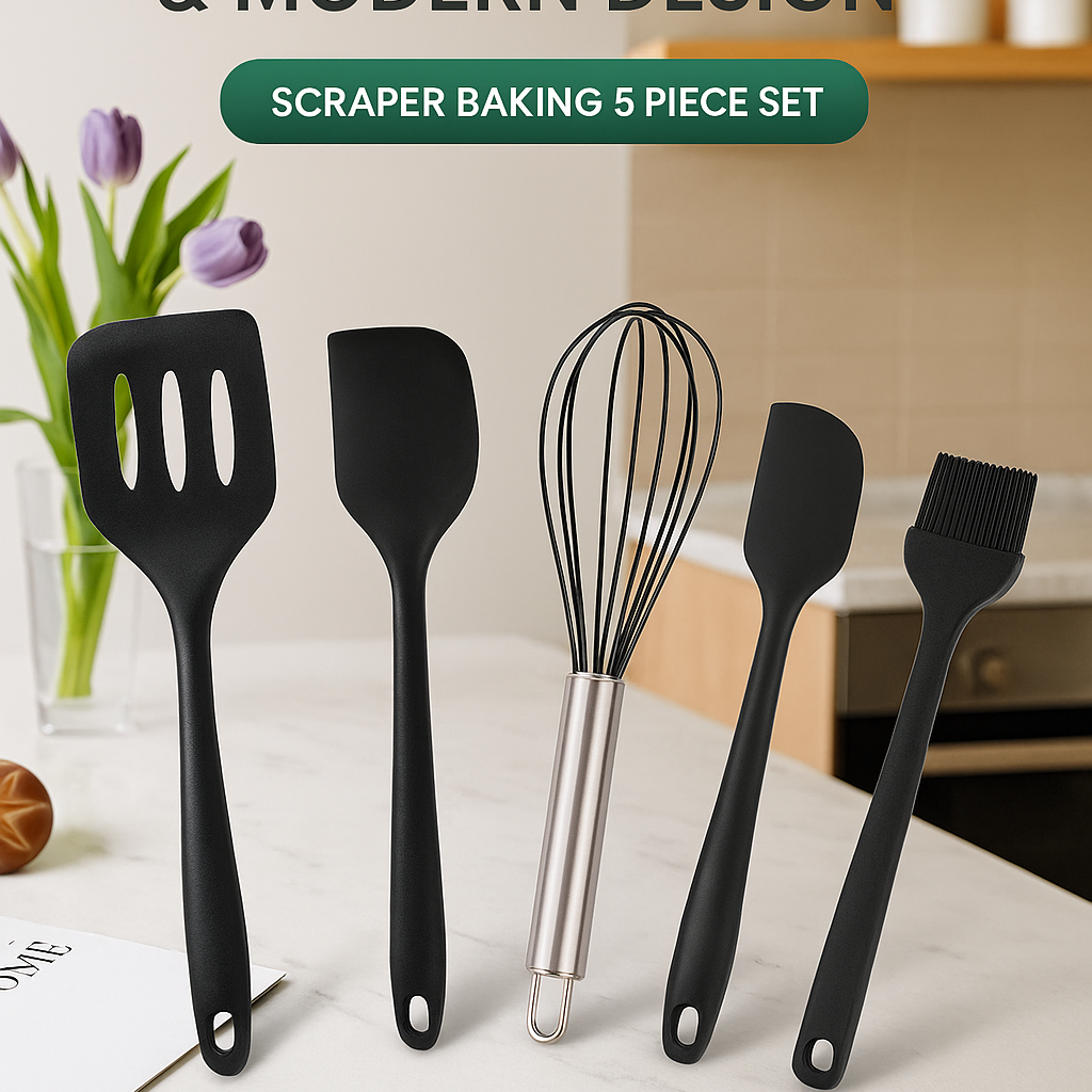 This premium 5-piece silicone utensil set is designed for effortless mixing, spreading, and whisking. Each tool combines flexibility with strength, giving you total control whether you’re baking, cooking, or decorating desserts.