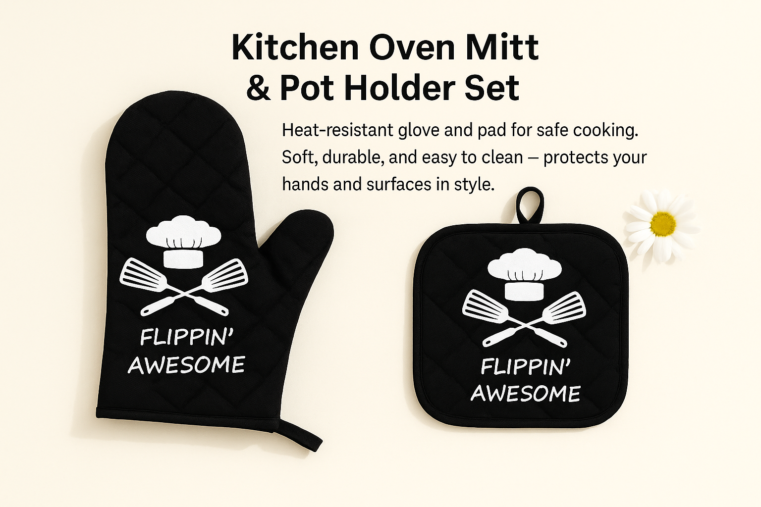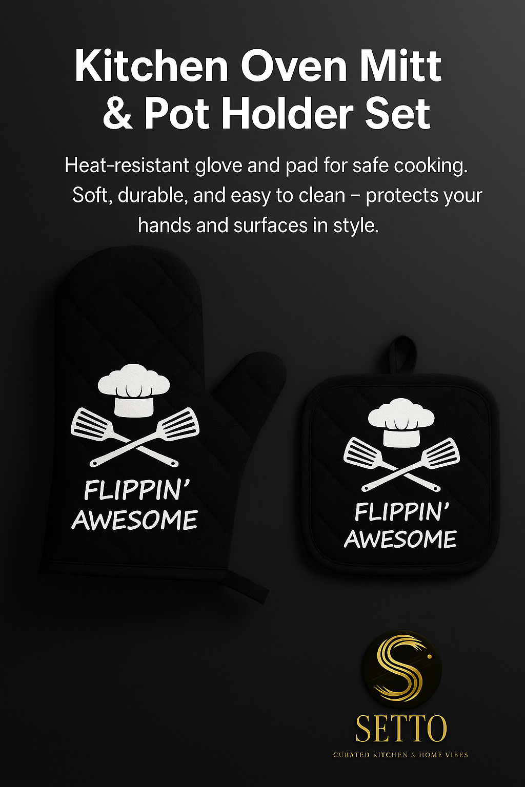 Cook with confidence using this heat-resistant kitchen glove and mat set, designed to protect your hands and surfaces from high temperatures while keeping your kitchen stylish.
