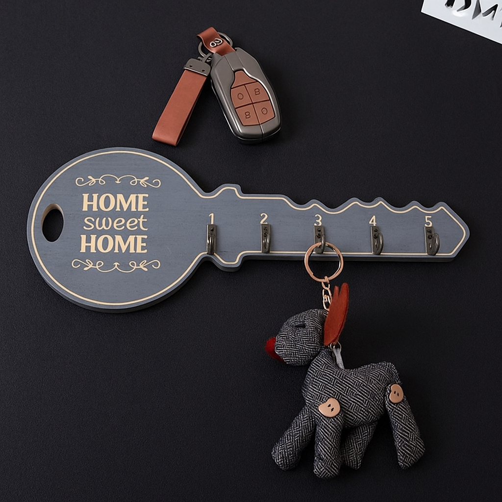 Add a cozy touch to your entrance with this Home Sweet Home key holder, beautifully shaped like a key to keep your essentials organized.