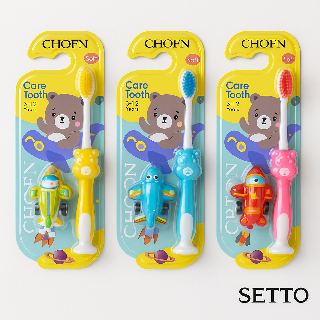 Soft bristles gentle on young gums and teeth.