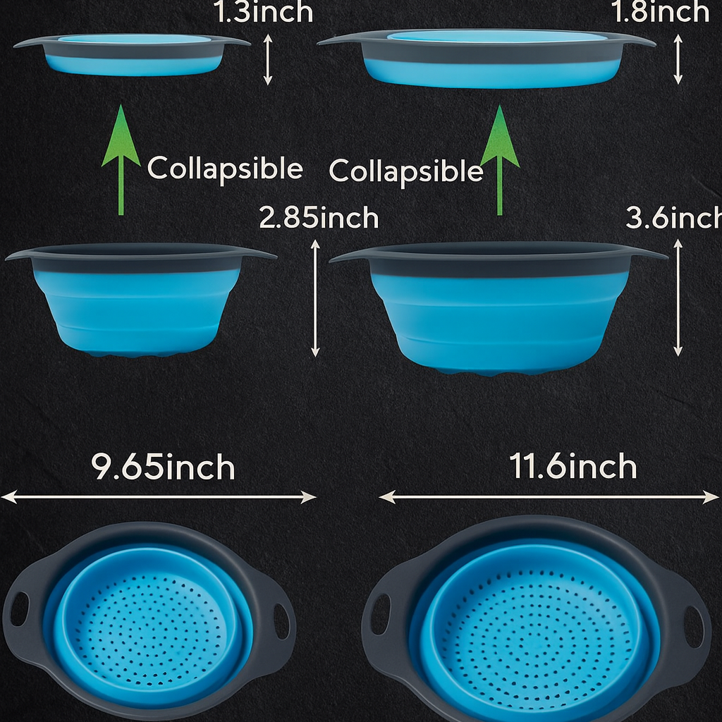 Premium round collapsible colander set made of food-grade PP + TPR material — safe, durable, and heat-resistant.