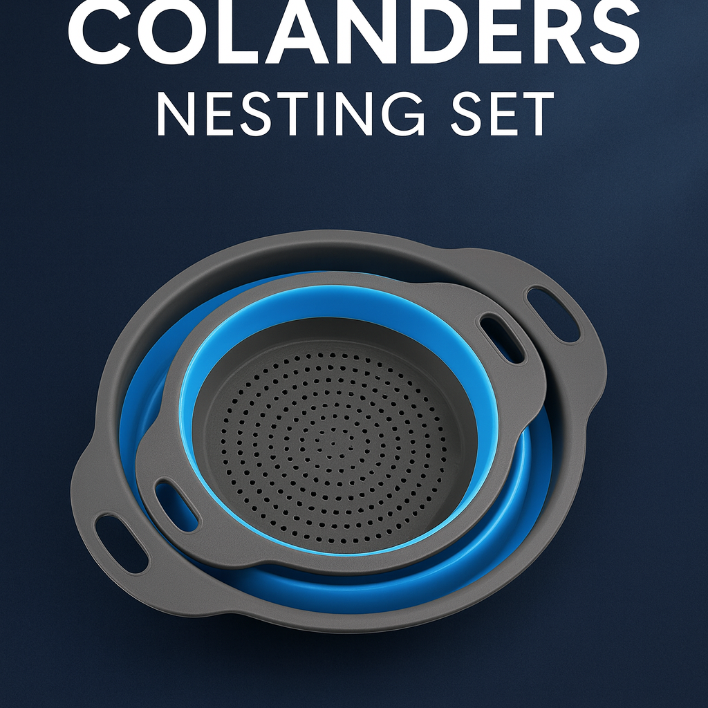 Round Foldable Silicone Colander Set (Blue)